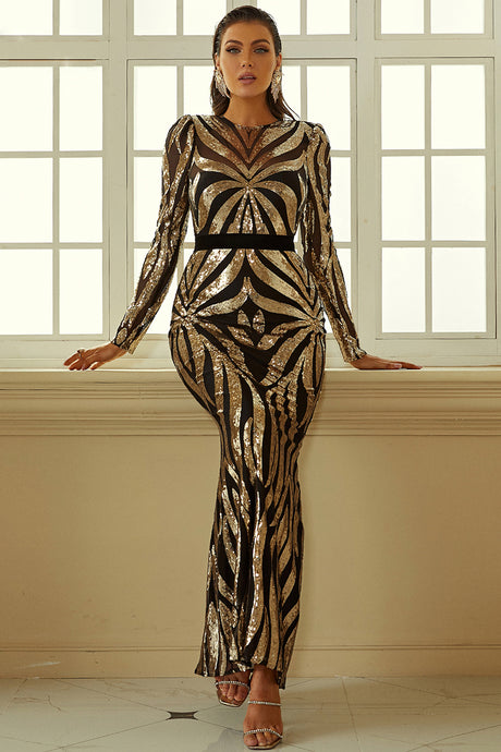 3/4 Sleeves Mermaid V-neck Pleated Split Sequins Evening Party Dress E90820